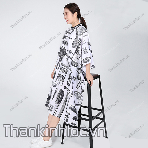 Đây là một trong những mẫu áo choàng chiếm được nhiều sự tin dùng của những barber bởi hoa văn in trên áo là những dụng cụ sát cánh xuyên suốt trên con đường hành nghề tóc, vậy nên đừng bỏ lỡ 1 em áo như này nha sẽ tiếc lắm đấy !