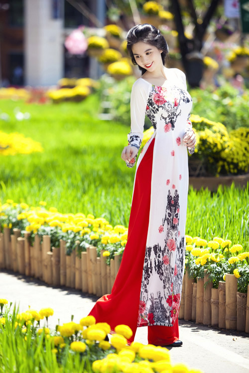 Áo dài hoa cách điệu giúp bạn gái thêm tươi tắn và duyên dáng