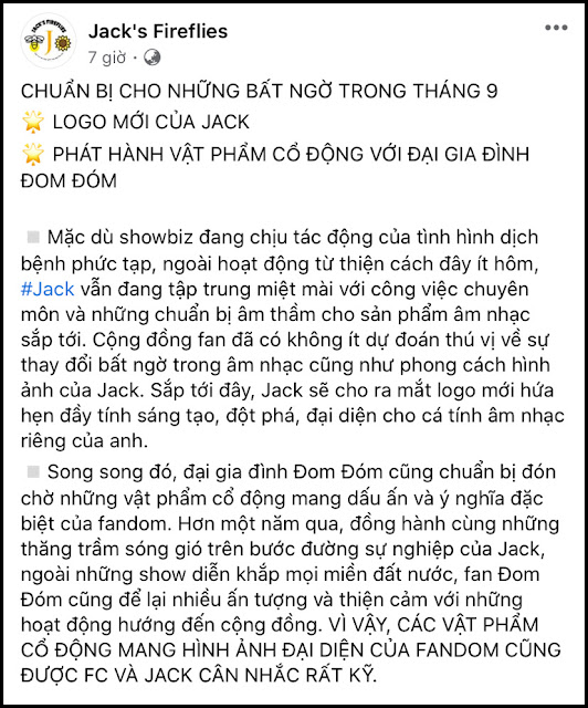 Nhận được nhiều sự góp ý chân thành từ những thành viên FC, rạng sáng nay ( 17/8 ) phía đại diện thay mặt FC đã chính thức lên tiếng và lý giải rõ ràng .Bài viết được đăng tải trên fansite Jack’s Fireflies