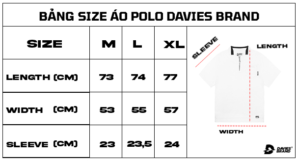 Áo thun polo nam đẹp không chỉ dựa và kiểu phong cách thiết kế mà còn nhìn nhận cao dựa trên form áo. Kết quả kích cỡ là tổng trung bình công hơn hàng ngàn người mua Davies để mang đến size tiêu chuẩn tương thích với hầu hết người mang với ba size M / L / XL