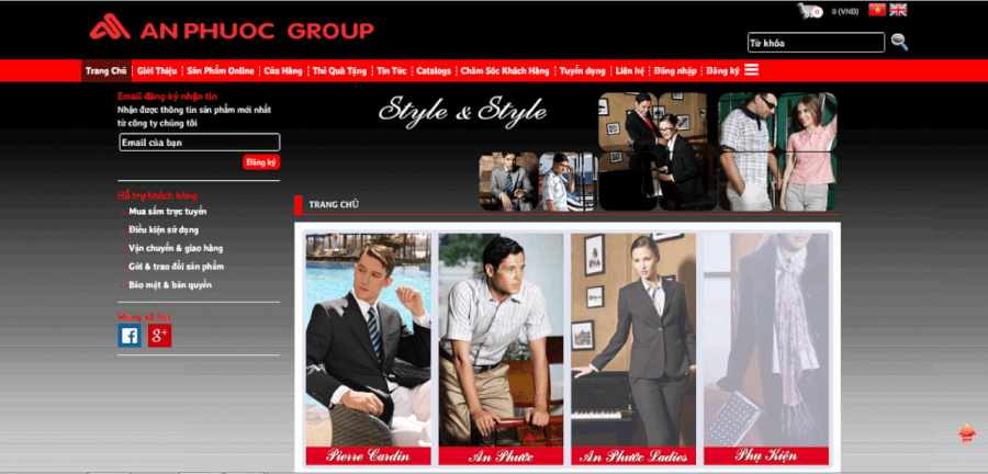 Giới thiệu về anphuoc.com.vnAnphuoc. com.vn là website của Công ty Trách Nhiệm Hữu Hạn May Thêu Giày An Phước. Đây là website chuyên kinh doanh thương mại những loại sản phẩm trực tuyến phục trang nam và nữ, có liên kết kinh doanh với Pierre Cardin. Được xây dựng từ năm 1997, sau 15 năm tăng trưởng thiết kế xây dựng, An Phước đã và đang có nhiều bước tăng trưởng vượt bậc, không những lan rộng ra quy mô sản xuất trong nước mà còn tăng trưởng ra thị trường trong nước .