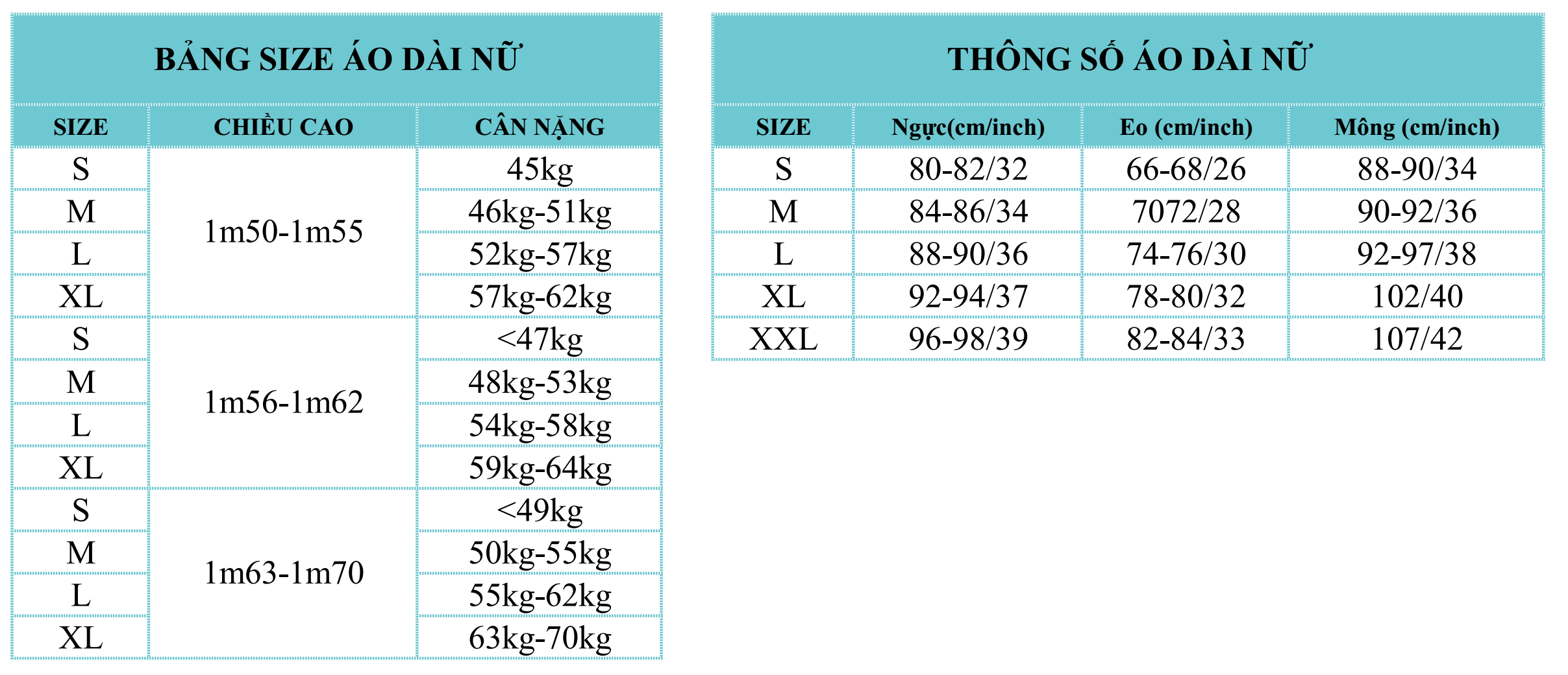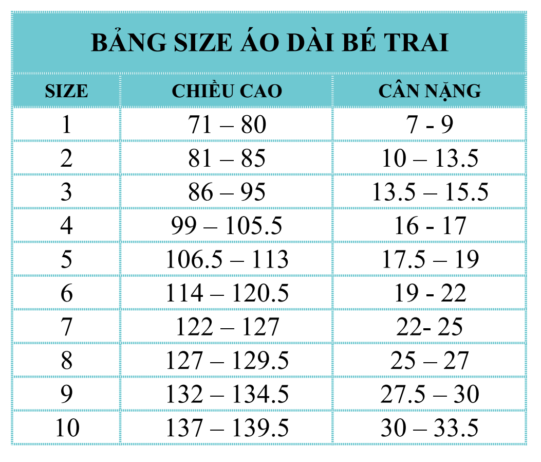 * Quý khách có số đo ngoài bảng trên vui lòng liên hệ Nàng Thơ để được tư vấn. (Size tối đa 150kg)