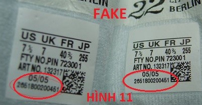 Tem giày chính hãng được ép nhiệt tốt và phẳng như hình 2 còn tem giày fake tuy cũng được ép nhiệt nhưng không chuẩn nên vẫn bị gập có nếp nhăn, bong mép tem như hình 13 .