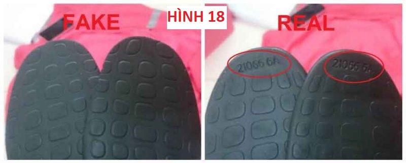 Một đôi giày sneaker xịn sẽ có phần đế giày được cắt gọt thật đúng mực sao cho nó hoàn toàn có thể đứng ngay ngắn và chắc như đinh trên một mặt phẳng. Còn với giày fake, đường cắt ở đế giày hoàn toàn có thể bị lệch dẫn đến hiện tượng kỳ lạ xiêu vẹo, cập kênh khi được đặt nằm thẳng ( hình 15 ) .