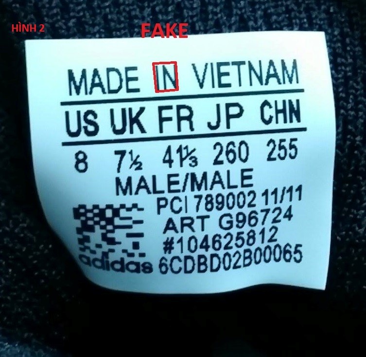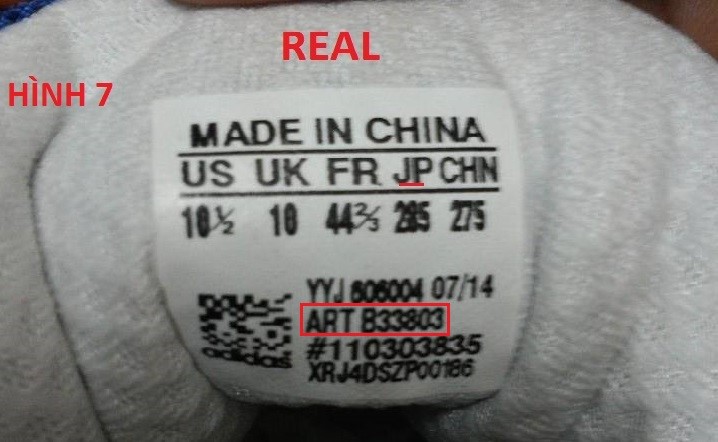 Cụ thể, trên mỗi miếng tem sẽ Open một dòng mã mẫu sản phẩm đại diện thay mặt cho mỗi kiểu giày Adidas khác nhau, chú ý quan tâm là mỗi kiểu chỉ có một mã duy nhất. Dòng mã này có dạng một dãy chữ và số đứng đằng sau ART. Sau khi đã xác lập được mã loại sản phẩm trên đôi giày của mình, bạn hoàn toàn có thể lên ngay Google gõ Adidas cùng mã đó để kiểm tra hình ảnh liệu có đúng với đôi giày của bạn hay không. Nếu giống thì bạn hoàn toàn có thể tạm yên tâm. Một trường hợp khác đó là bạn không tìm được hiệu quả nào qua mã loại sản phẩm, lúc này cũng đừng quá lo ngại bở có năng lực là đôi giày đó là mẫu sample hoặc loại sản phẩm chưa được ra đời trên các store chính thức .