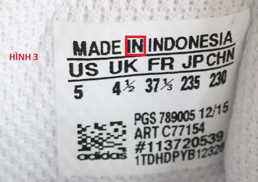 tem MADE IN INDONESIA chữ “ IN ” hoàn toàn có thể không được vuông cho lắm vì phải chừa hàng để vừa với chữ “ Indonesia ” ( hình 3 ) .