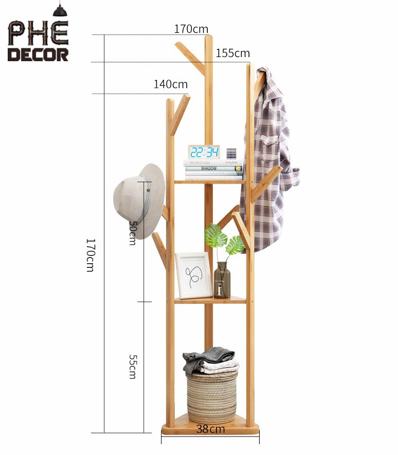 Cây treo quần áo thông minh có 03 nhánh nhỏ, mỗi nhánh có 03 móc treo, hoàn toàn có thể treo được lượng lớn đồ và phân loại đồ phong phú theo những nhánh nhỏ. Đồng thời, cây treo có 3 ngăn khác nhau để đựng đồ .