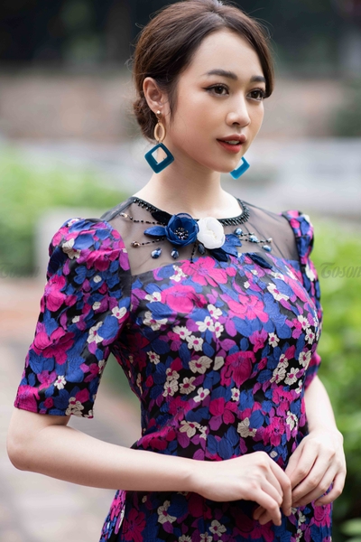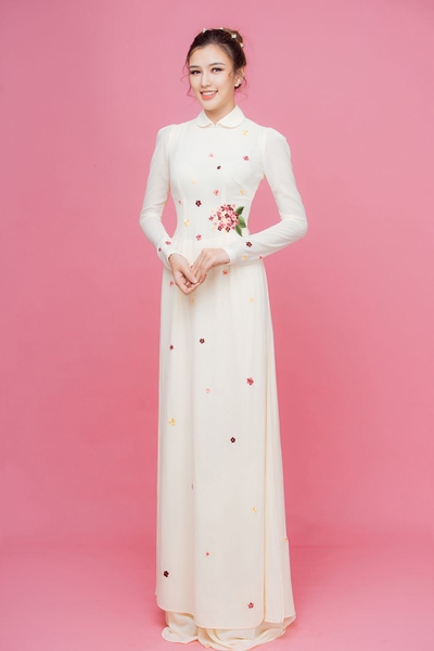 Không quá màu sắc nổi bật hay hoa văn tinh xảo, áo dài họa tiết hoa nhí lại mang hơi hướng dịu nhẹ, rất phù hợp với những cô nàng có tính tình duyên dáng, hiền lành. Khoác lên mình bộ áo dài tinh khôi với những bông hoa nhỏ xinh vương vấn, điểm xuyết vài đường nét cách điệu nhẹ nhàng sẽ giúp tôn lên dáng vẻ thướt tha, yêu kiều của người con gái Việt.