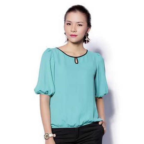 Không nhàm chán hay gò bó như những chiếc áo sơ mi truyền thống cuội nguồn, kiểu áo sơ mi bo gấu với phong cách thiết kế tay phồng sành điệu kiểu Âu biểu lộ một quý cô thời thượng, tân tiến nhưng trọn vẹn không mất đi sự êm ả dịu dàng .