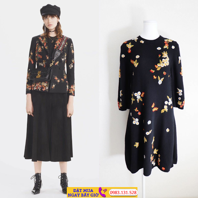 Váy dệt kim thêu hoa Christian Dior 17AW