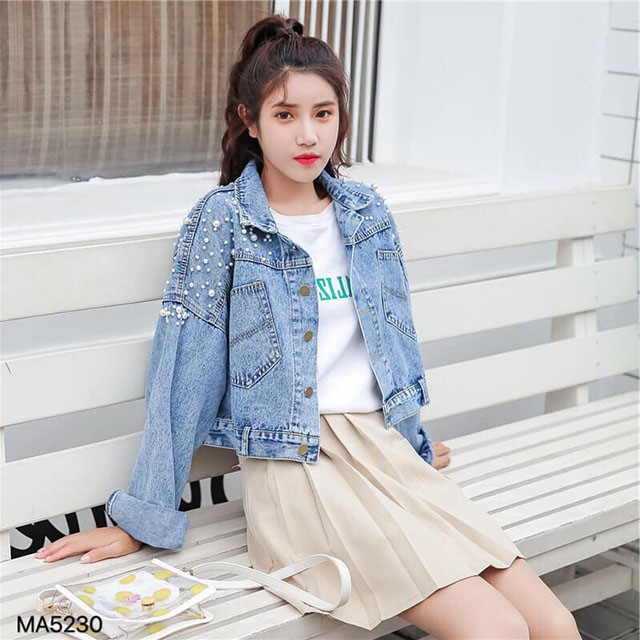 Mẫu áo jean đính cườm