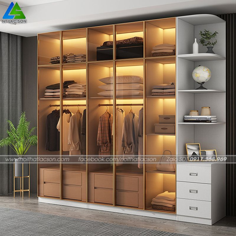 Mẫu tủ quần áo này của NỘI THẤT LẠC SƠN chiếm được tình cảm lớn từ phía khách hàng. Tủ được thiết kế theo phong cách hiện đại tinh tế mà sang trọng. Sản phẩm gồm nhiều ngăn với các kích thước lớn nhỏ khác nhau giúp cho người dùng dễ dàng sắp xếp đồ đạc đảm bảo sự gọn gàng, ngăn nắp.