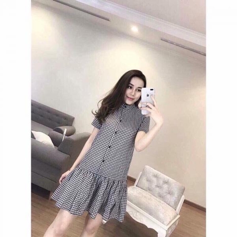 Mẫu đầm kẻ caro đen trắng dáng suông được phong cách thiết kế cách điệu với bèo nhún ở tay áo, phần eo được thắt đai tôn lên vòng eo con kiến tích hợp thêm phần đuôi cá dưới đuôi váy đã mang đến một item không hề tuyệt vời và hoàn hảo nhất hơn cho nàng diện xuống phố .