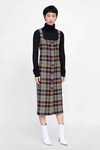 Váy kẻ caro dáng suông phù hợp xuống phố mùa thu đông