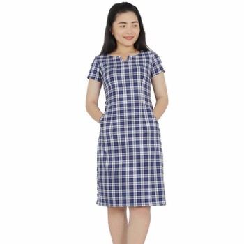 Đầm kẻ caro suông dáng trơn tương thích với nàng văn phòng